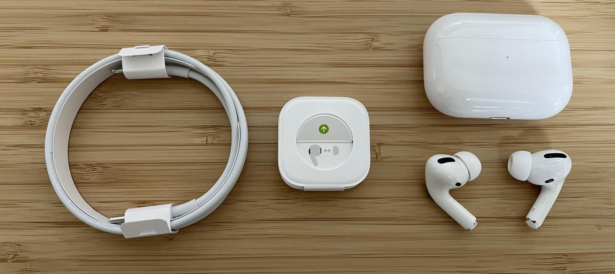 설명서를 빼니 에어팟 본체와 충전기, 또 에어팟 귀에끼는 고무 여분이 들어있었습니다